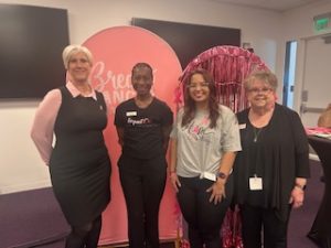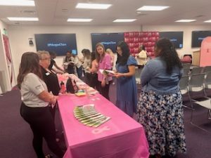 October 23, 2025 – JPMorgan Chase hosted a Fireside Chat with their employees. My Hope Bag was invited to be on a panel with two other women: one a JPMorgan Chase employee and the other, a representative from Impact One. Sarah Ellery and Angie Jones represented My Hope Bag. The panel was individually asked questions on how their nonprofit helps women with breast cancer while the Chase employee shared about her breast cancer journey.